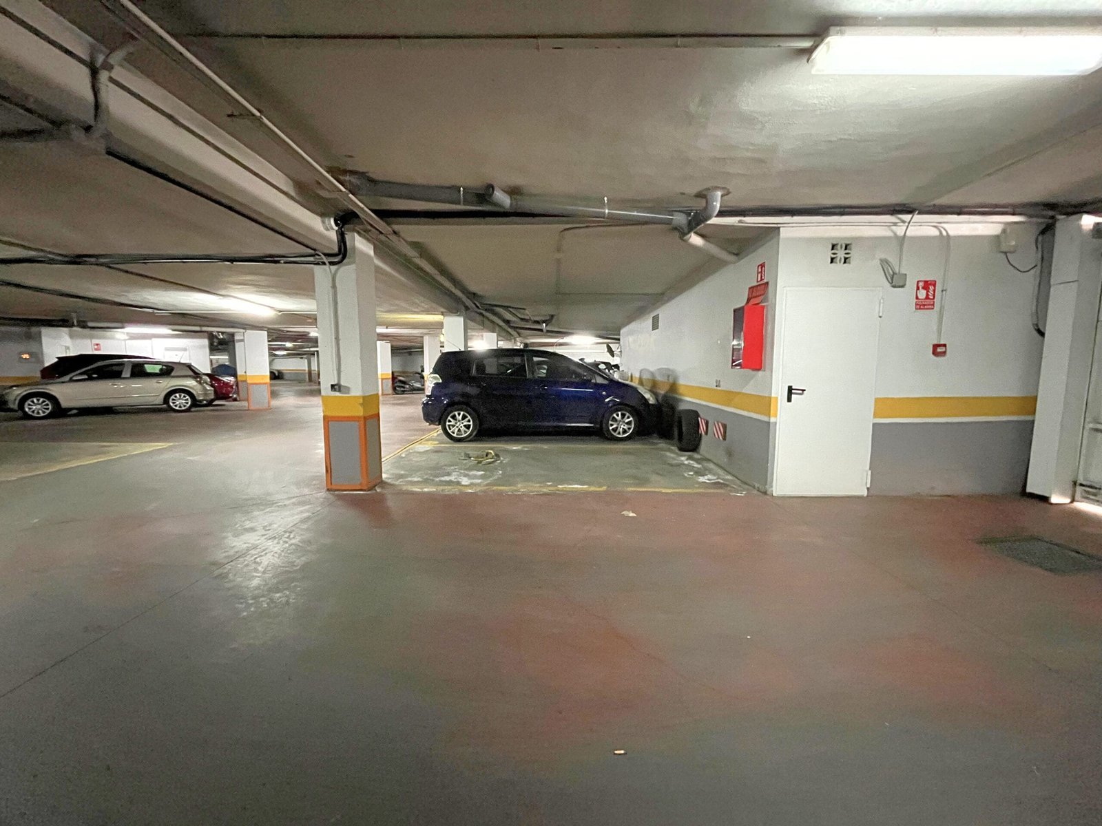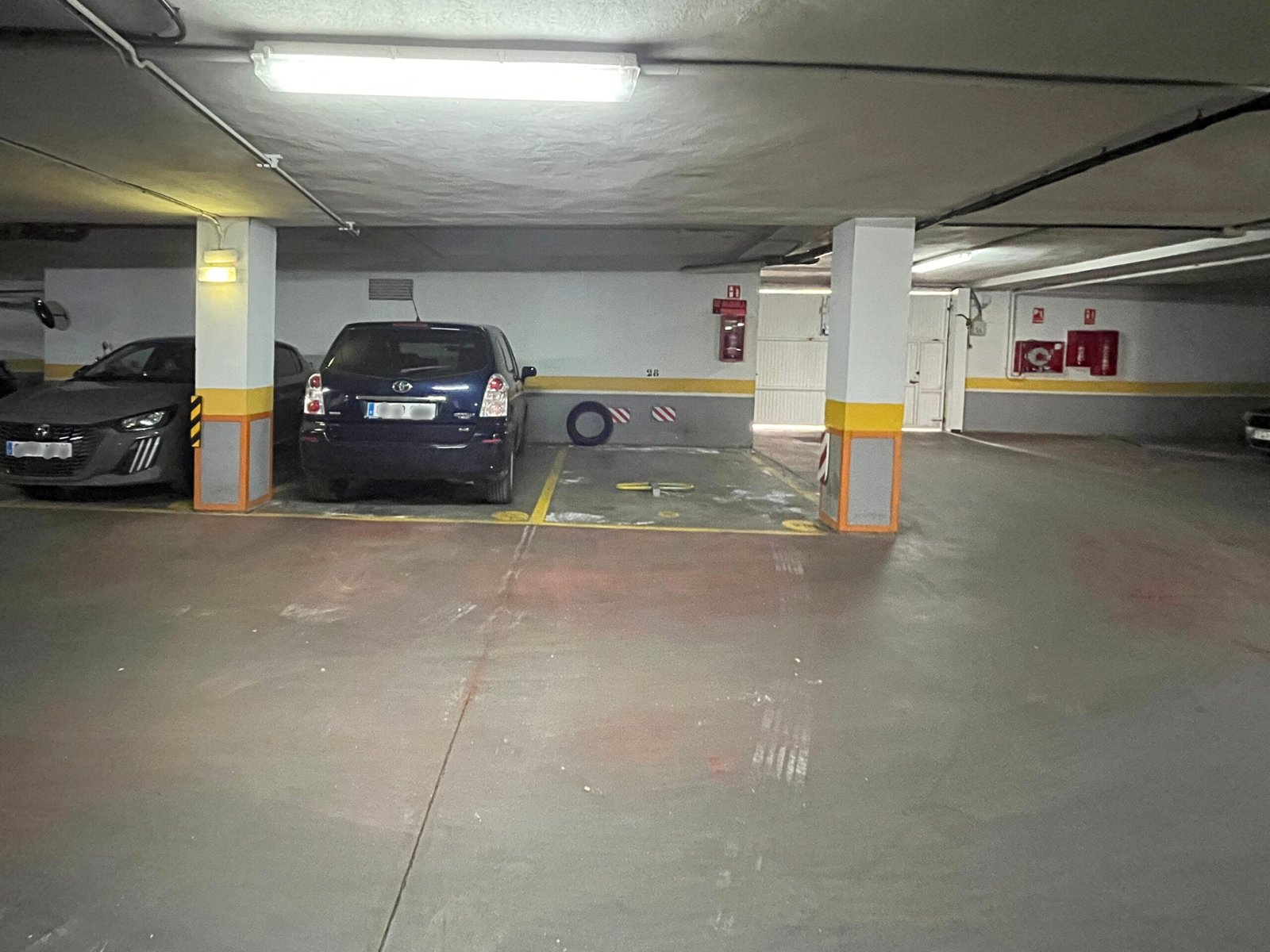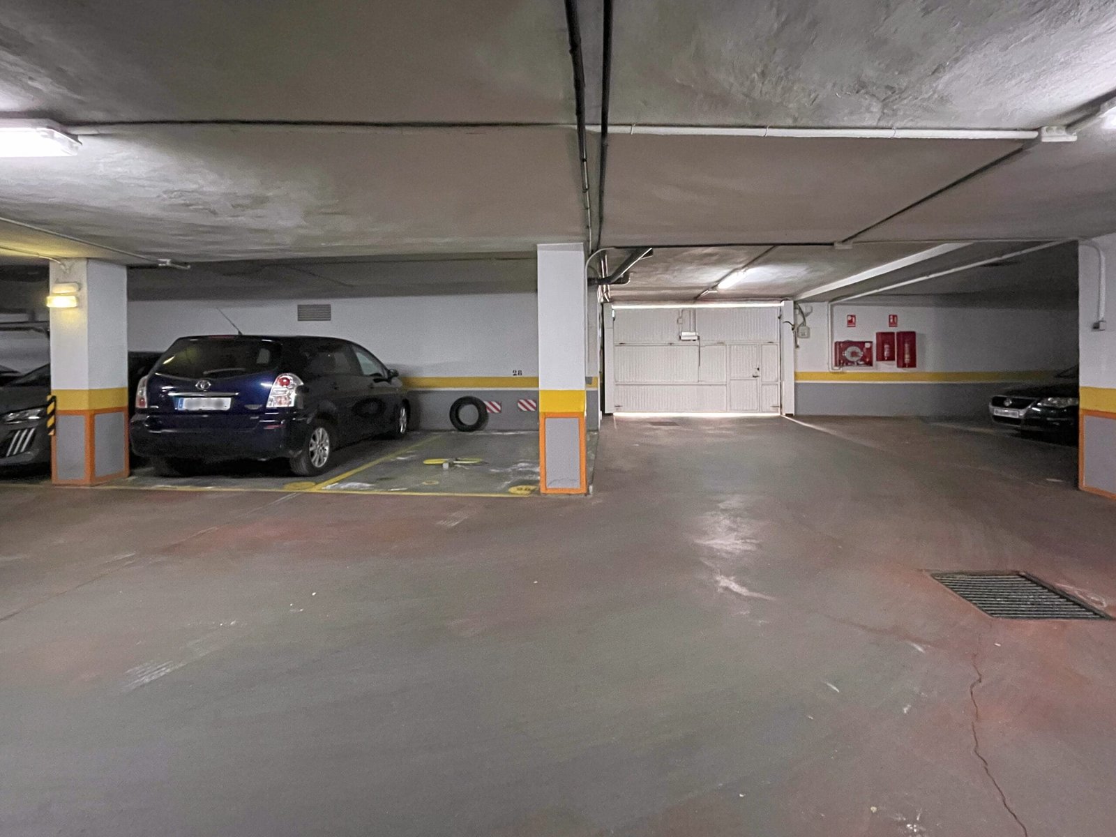 La plaza cuenta con 24 m² construidos según Catastro y se localiza junto a la puerta interior del garaje, en el hueco delimitado entre columnas, lo que facilita el estacionamiento recto sin necesidad de maniobras complejas. Por tamaño y disposición, resulta adecuada para vehículos de volumen medio o superior.