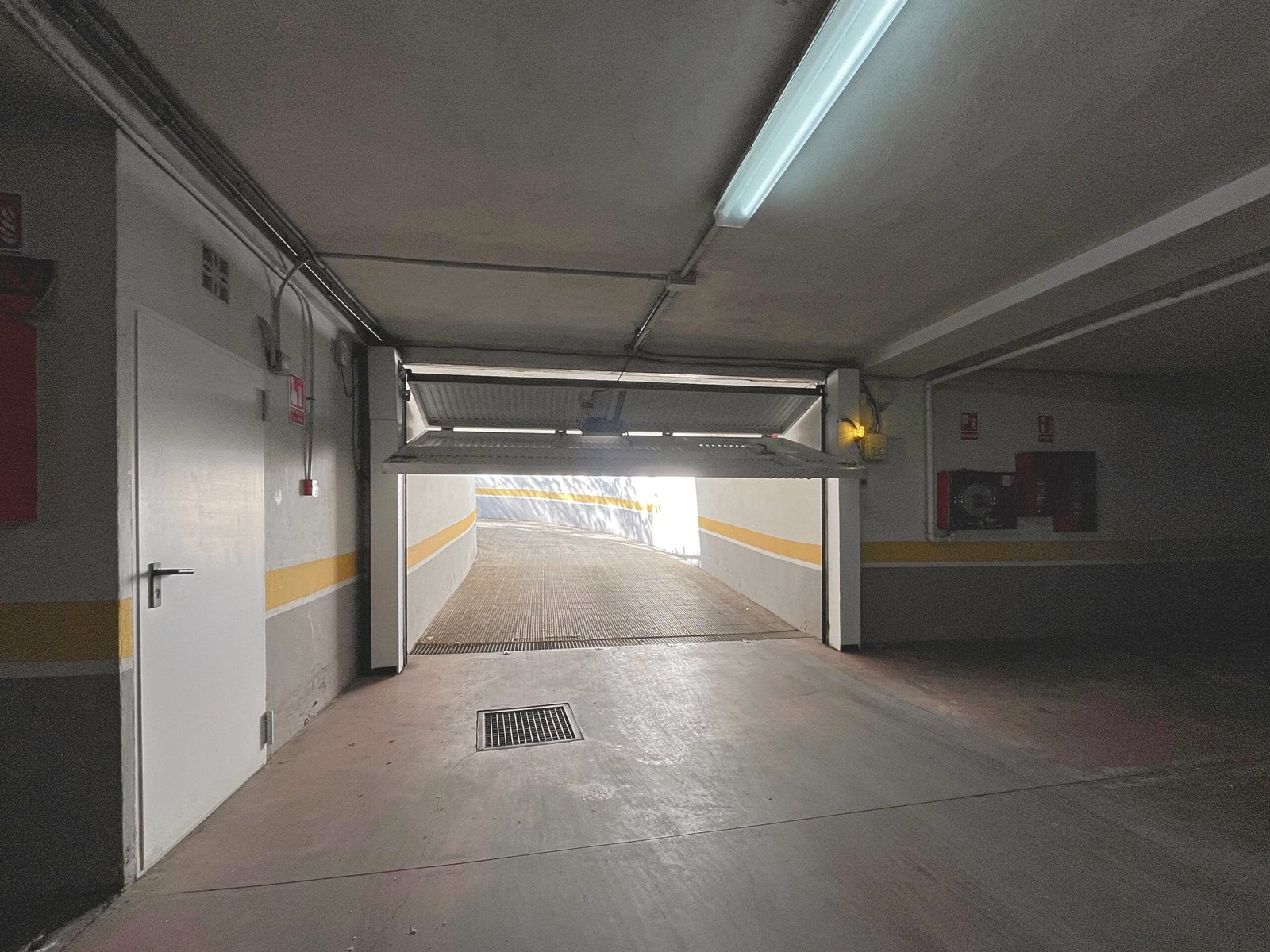 El acceso rodado se efectúa por puerta automática, mediante una rampa amplia con recorrido cómodo. Respecto al acceso peatonal, no consta si los propietarios de plaza que no residan en el edificio pueden usar el portal, de modo que, en ese caso, el acceso peatonal se realizaría previsiblemente por la propia rampa, como sucede habitualmente cuando el uso es exclusivamente de garaje.