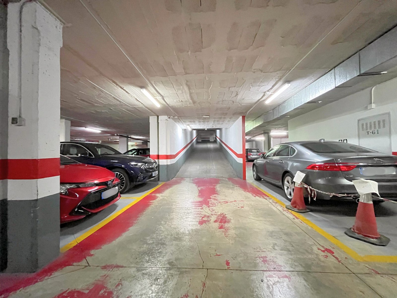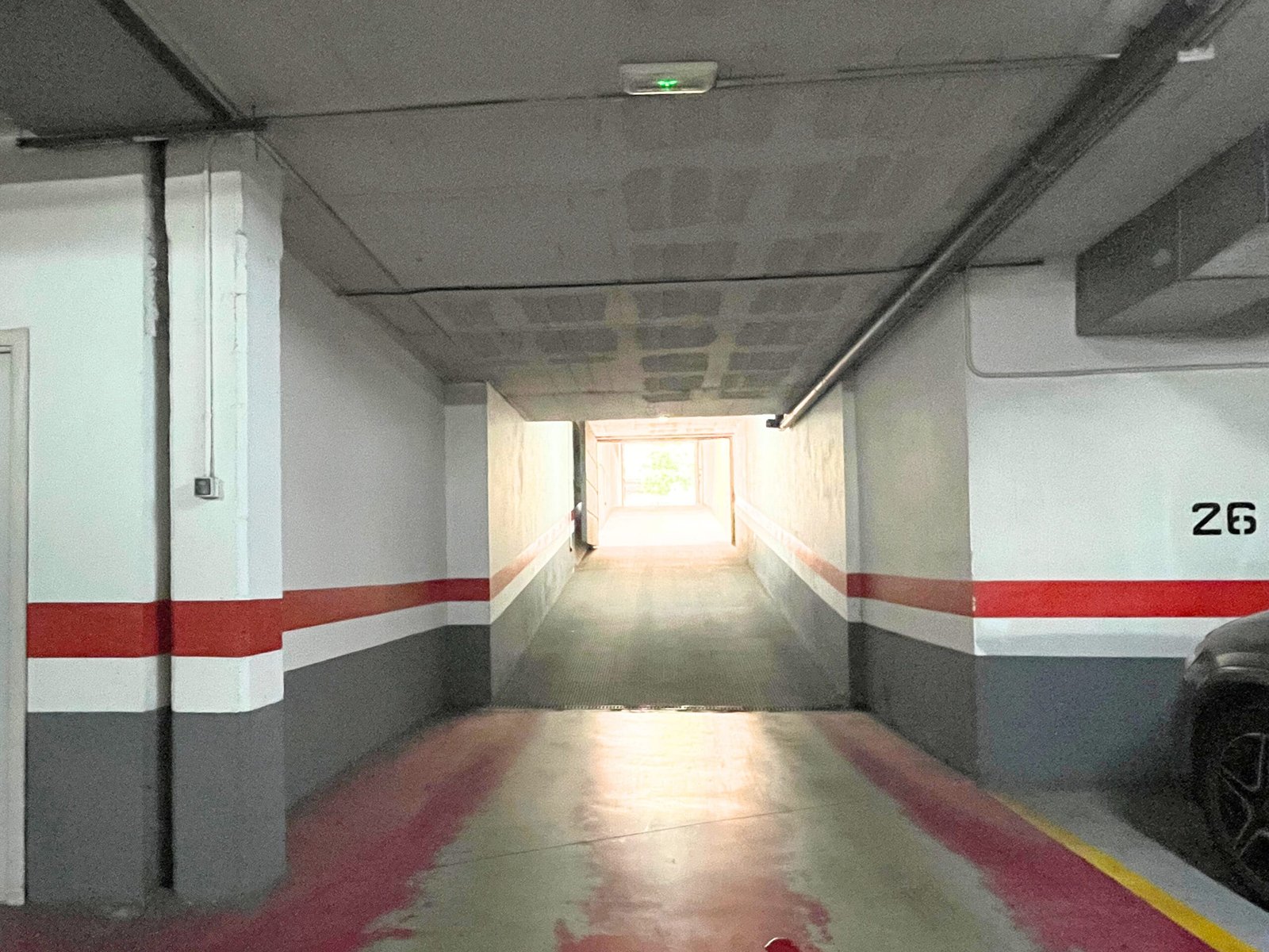 La entrada al garaje es amplia, con rampa de suave inclinación, y acceso mediante puerta automática. El recorrido interior es cómodo, con pasillos amplios y señalización clara. La plaza se encuentra en planta subterránea y es de fácil maniobra, ideal para coche mediano.El garaje cuenta con cámara de vigilancia y vado activo. Además, el edificio dispone de ascensor con acceso desde la planta de garaje a las zonas comunes (uso sujeto a normativa de la comunidad).